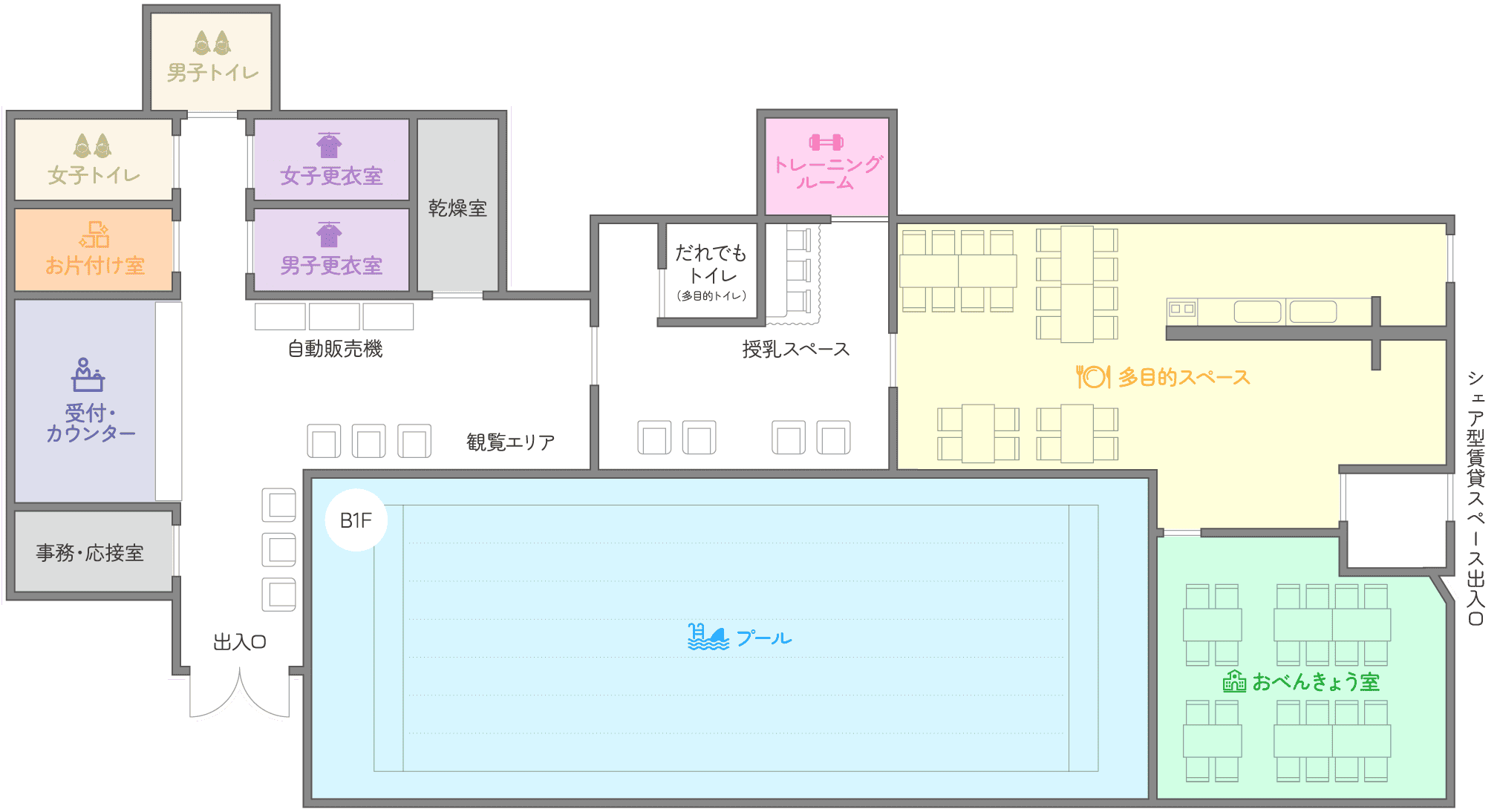 プール施設ということだけにとどまらず、会員様に楽しく通ってもらえる施設を目指してます。