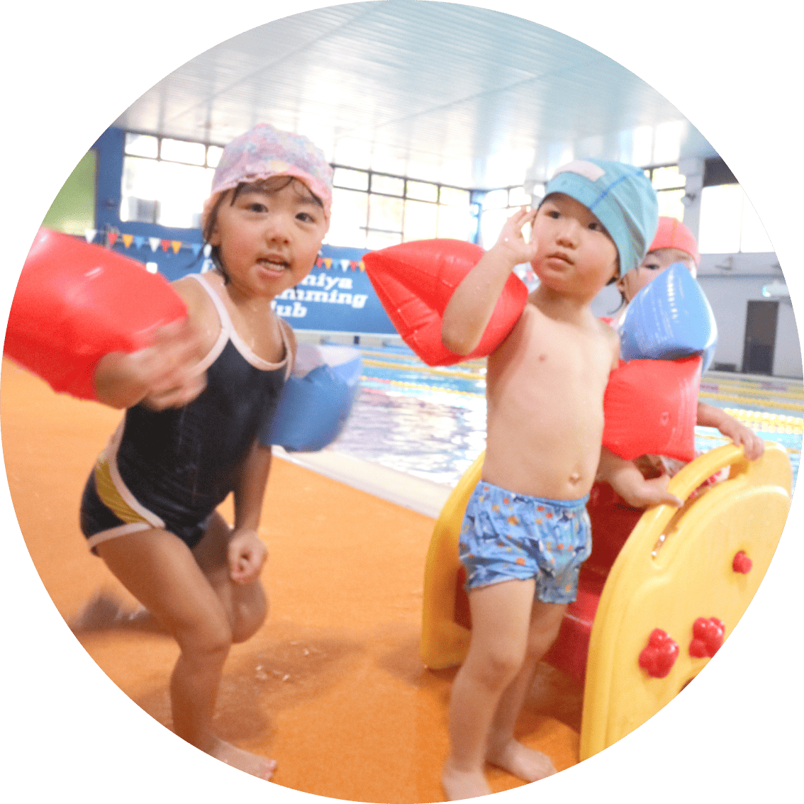 お子様の年齢や発育発達に合わせた指導で基礎的な動きとスイミングスキルの習得を行います。
